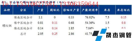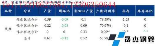 1、調(diào)研數(shù)據(jù)顯示,統(tǒng)計(jì)的河南地區(qū)10家建筑厚壁無縫鋼管樣本無縫厚壁鋼管廠家中,河南省無縫厚壁鋼管廠家線盤日均產(chǎn)量0.61萬噸,較上周產(chǎn)量減少0.12萬噸;線盤產(chǎn)能利用率53.98%,較上周下降16.44%。