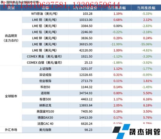 金融市場:倫鎳開盤后連續(xù)3日跌停,周度大跌55.06%;全球股市中,中國股市下跌,歐美股市上漲;美元指數收于98.23,下跌0.91%。