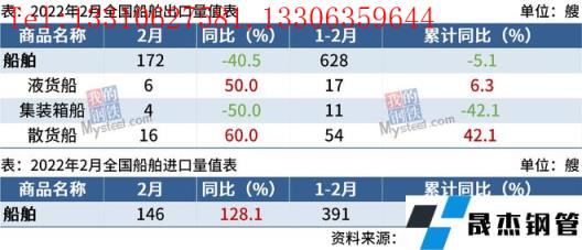 2月船舶進(jìn)口146艘,同比增長128.1%;1-2月累計(jì)進(jìn)口391艘,同比增長97.5%。