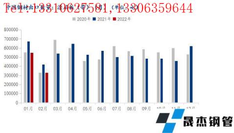 海關總署數(shù)據(jù)顯示:2022年2月我國涂層板(帶)出口總量共計33.26萬噸,月環(huán)比降幅39.36%,年同比下降21.15%。2022年1-2月我國涂層板(帶)出口總量共計88.0991萬噸,年同比下降19.51%。