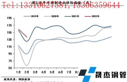 鋼鐵是終端制造業(yè)的重要生產(chǎn)原材料,以鋼鐵消費(fèi)趨勢為觀測視角可以較為準(zhǔn)確的判斷下游制造業(yè)發(fā)展?fàn)顩r。2月鋼鐵業(yè)供給指數(shù)為146.92,同比下降5.26,環(huán)比下降2.86%。北方地區(qū)在采暖季和冬奧會環(huán)保影響下,厚壁無縫鋼管產(chǎn)量管控依然嚴(yán)格。據(jù)統(tǒng)計,2月全國粗鋼產(chǎn)量6738.5萬噸,日均產(chǎn)量240.66萬噸,環(huán)比減少9.79萬噸,降幅3.91%,同比下降13.86%。消費(fèi)方面,五大品種厚壁無縫鋼管消費(fèi)環(huán)比下降19.63%,同比下降4%。具體來看,房地產(chǎn)資金緊張雖有緩解,但受季節(jié)影響,用鋼量繼續(xù)下降,建筑厚壁無縫鋼管表觀消費(fèi)量環(huán)比下降38%。制造業(yè)方面,受春節(jié)和疫情干擾因素影響,2月份,制造業(yè)企業(yè)復(fù)工復(fù)產(chǎn)較晚,實際用鋼消費(fèi)下降,其中熱卷消費(fèi)同比下降7.4%,環(huán)比下降8.2%。