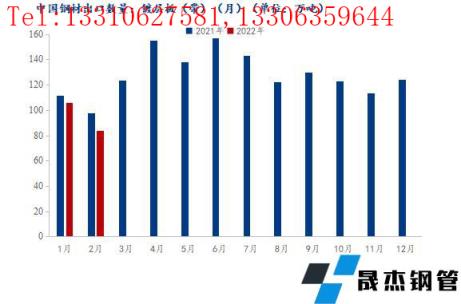 2022年2月我國(guó)鍍鋅板(帶)出口總量共計(jì)83.52萬(wàn)噸,年同比下降14.5%;2022年1-2月份我國(guó)鍍鋅板(帶)出口總量共計(jì)189.43萬(wàn)噸,年同比下降9.4%。