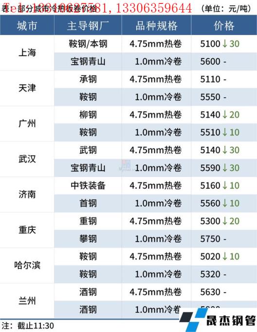 ◎上海:23日早盤熱卷市場(chǎng)價(jià)格跌30,現(xiàn)主流報(bào)價(jià)1500普5080-5100元/噸,1800報(bào)5190-5200元/噸;1500錳5240元/噸,1800報(bào)5340元/噸左右,2.75Q235B報(bào)5200-5220元/噸,2.75SPHC報(bào)5260元/噸左右。(單位:元/噸)