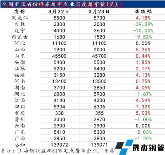 截至3月23號(hào),國內(nèi)重點(diǎn)屠宰企業(yè)開工率為26.52%,環(huán)比昨日小幅下降,未來幾日的封禁對(duì)于屠宰企業(yè)開工有著明顯的利空,預(yù)計(jì)未來幾日,部分北方地區(qū)屠企開工率或繼續(xù)下降,那就意味著他們的利潤將被繼續(xù)擠壓。