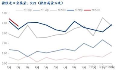 縱觀歷年來的中國鎳鐵進(jìn)口數(shù)據(jù),2月進(jìn)口量均會存在環(huán)比下降的情況。今年2月環(huán)比減量高達(dá)20%,除了1月進(jìn)口量太多,主因還是2月自然天數(shù)較少。雖然印尼鎳生鐵冶煉企業(yè)春節(jié)正常生產(chǎn),但國內(nèi)印尼鎳鐵進(jìn)口貿(mào)易多處于假期狀態(tài),月內(nèi)進(jìn)口量也隨之降低。