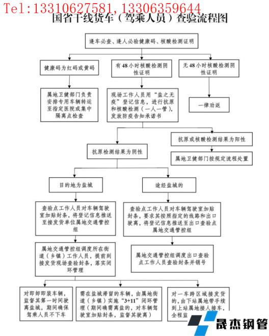 就當(dāng)前嚴(yán)峻的疫情防控需要,鹽城市內(nèi)各公路查驗(yàn)點(diǎn)迅速地全面啟動(dòng)疫情防控通道查驗(yàn)工作,凡是進(jìn)入車(chē)輛,“逢車(chē)必查,逢人必驗(yàn)”,并就此出臺(tái)了高速公路、國(guó)省干線貨車(chē)查驗(yàn)管理的詳細(xì)細(xì)則。由此,鹽城市各厚壁無(wú)縫鋼管市場(chǎng)及碼頭港口貨物運(yùn)輸受到管制,筆記就部分商戶做簡(jiǎn)單了解,針對(duì)近期情況做簡(jiǎn)單匯總。