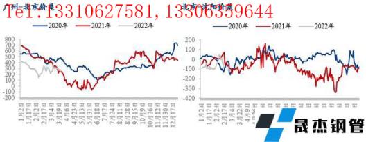 目前北京價(jià)格居于低位,不過從南北價(jià)差的歷史數(shù)據(jù)來看,廣州-北京價(jià)差不足300元/噸,也屬于偏低水平;雖然目前東北區(qū)域價(jià)格略高于北京,但是東北區(qū)域受疫情影響較大,汽運(yùn)運(yùn)輸受阻,資源消化艱難,其中沈陽建筑厚壁無縫鋼管市場庫存量已經(jīng)創(chuàng)出有調(diào)研數(shù)據(jù)以來的峰值,市場有一定的庫存壓力,因此在華南價(jià)格優(yōu)勢不大,又在緩解東北區(qū)域壓力的前提下,北京以及京津冀其他區(qū)域仍是東北區(qū)域無縫厚壁鋼管廠家(凌鋼、新?lián)徜摰龋┵Y源輸送的主要區(qū)域。