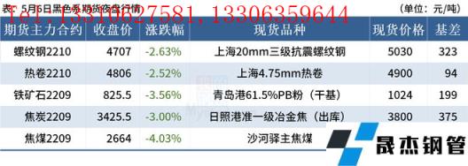 ◎5月6日,河北、山西等地焦企焦炭?jī)r(jià)格第一輪下調(diào)200元/噸,主流無縫厚壁鋼管廠家暫無回應(yīng)。按照當(dāng)前的市場(chǎng)情緒和盤面給出的市場(chǎng)預(yù)期,普遍認(rèn)為此輪焦炭的降幅在三輪左右,大概能達(dá)500-600元/噸。