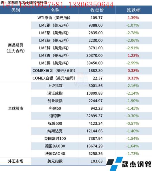 ◎安賽樂米塔爾2022年一季度自有鐵礦石產(chǎn)量為1200萬噸,環(huán)比減少10.45%;一季度粗鋼產(chǎn)量1630萬噸,環(huán)比減少1.21%;一季度厚壁無縫鋼管發(fā)運(yùn)量為1530萬噸,環(huán)比減少3.16%。