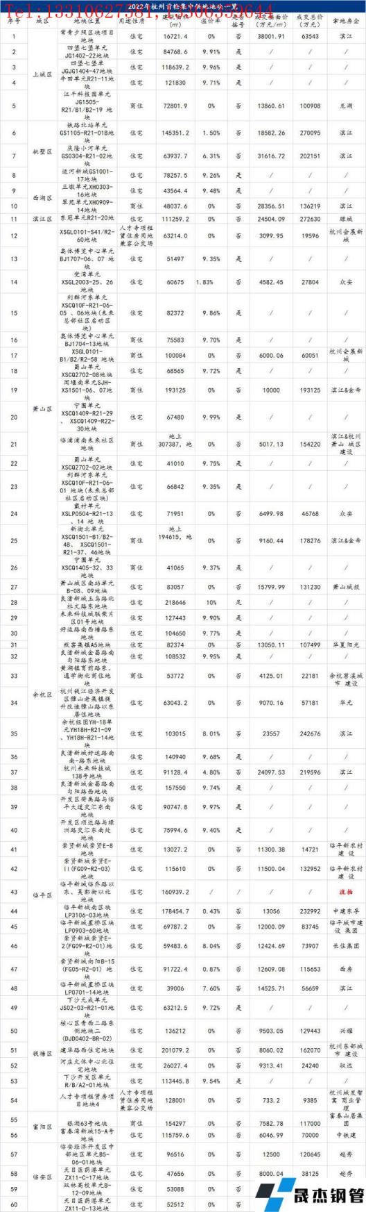 2022年杭州首批土地集中出讓落下帷幕,60宗地塊(包含2宗人才租賃用地)總占地面積約3849畝,總起拍價(jià)達(dá)798億元。