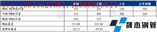 華東區(qū)域本周進口礦價格震蕩下行,五一假期之后無縫厚壁鋼管廠家并未著急補庫,市場整體交投情緒不及預(yù)期。截止本周五,青島港口行情價格PB粉942元/噸,周環(huán)比下跌36元/噸;超特粉724元/噸,周環(huán)比下跌29元/噸;卡粉1146元/噸,周環(huán)比下跌26元/噸;PB塊1280元/噸,周環(huán)比上漲25元/噸,粉塊價差進一步擴大。