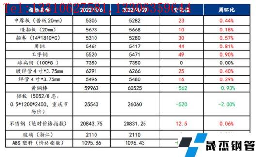 截止2022年5月6日,各原材料當(dāng)日即時價格以及價格周環(huán)比情況如下: