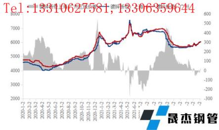 華東和華南作為鍍鋅板卷三大主流區(qū)域中的兩個(gè),其分工職責(zé)略有不同,華東地區(qū)以上海為例,其更多是作為無縫厚壁鋼管廠家投放資源的聚集地。隨著周邊江蘇、浙江等下游產(chǎn)業(yè)越來越集中,上海地區(qū)資源真正消化也是依托周邊市場(chǎng)。而華南市場(chǎng)一直以來作為消費(fèi)市場(chǎng),基本屬于是資源流入型區(qū)域,尤其是華東、華北地區(qū)資源,依托水運(yùn)將大部分資源發(fā)往華南。無論是從地理位置還是資源消費(fèi),華南地區(qū)價(jià)格本應(yīng)該處于三大主流區(qū)域中價(jià)格最高的水平,但是從圖1可以明顯看出,2021年6月中下旬到8月上旬,差不多維持了一個(gè)半月的倒掛,華南地區(qū)鍍鋅板卷價(jià)格較華東地區(qū)倒掛幅度達(dá)到200元/噸左右。筆者分析來看,2021年6月份市場(chǎng)仍處于上漲過程中,隨著價(jià)格的不斷上漲,華東與華南地區(qū)的價(jià)格逐漸拉開差距,華南地區(qū)的上漲速度明顯不及華東。在下跌過程中,華南地區(qū)價(jià)格表現(xiàn)更為堅(jiān)挺,逐漸與華東地區(qū)拉開差距,到11月份兩者間差距擴(kuò)大至全年最高450元/噸,而后華南價(jià)格高于華東地區(qū)逐漸恢復(fù)正常水平。