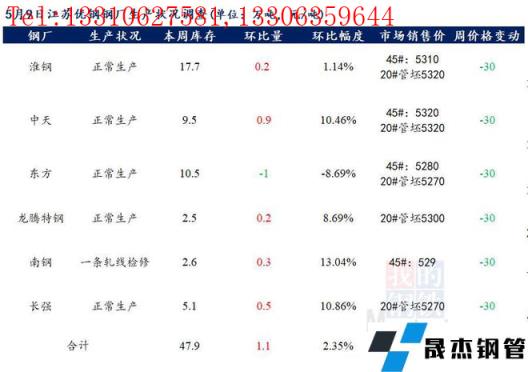 江蘇優(yōu)特?zé)o縫厚壁鋼管廠家棒材總庫(kù)存47.9萬(wàn)噸,較上周增加1.1萬(wàn)噸,環(huán)比增2.35%,較去年同期上升10.48萬(wàn)噸,同比增28.01%。