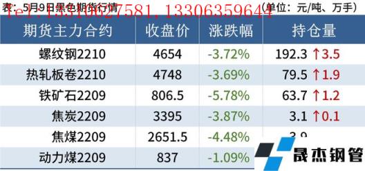 5月9日,國(guó)內(nèi)厚壁無縫鋼管市場(chǎng)價(jià)格全線下跌,唐山普方坯出廠價(jià)跌30報(bào)4680元/噸。9日黑色期貨全線重挫,市場(chǎng)恐慌情緒蔓延,交投氛圍冷清,商家拋售情緒濃。
