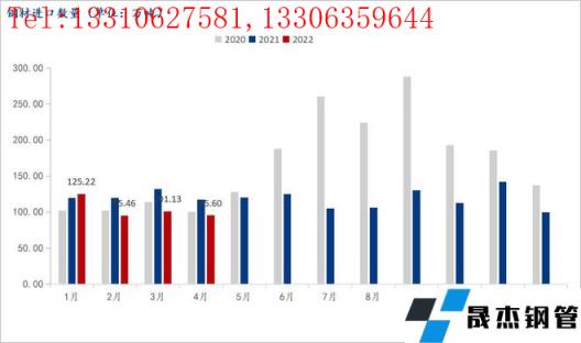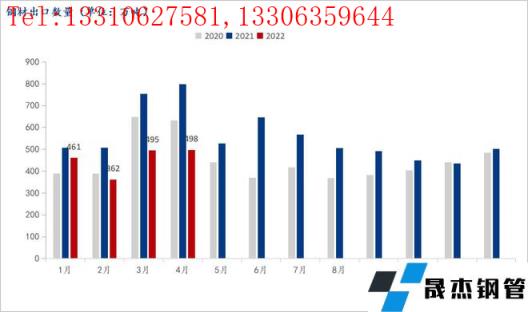 前言:海關(guān)總署5月9日數(shù)據(jù)顯示,2022年4月中國出口厚壁無縫鋼管497.7萬噸,較上月增加3.2萬噸,同比下降37.6%;1-4月累計出口厚壁無縫鋼管1815.6萬噸,同比下降29.2%。4月中國進(jìn)口厚壁無縫鋼管95.6萬噸,較上月減少5.5萬噸,同比下降18.3%;1-4月累計進(jìn)口厚壁無縫鋼管417.4萬噸,同比下降14.7%。