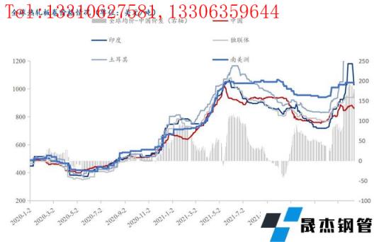 從2月至今我國收到的詢單以及實際出口成單情況來看,目前我國厚壁無縫鋼管進(jìn)出口主要的驅(qū)動因素還是價差。在烏俄沖突爆發(fā)后,海外市場供需錯配的情況十分嚴(yán)峻,我國接收到的詢單以及已經(jīng)簽訂的出口訂單出現(xiàn)暴增。即使面臨高額的出口稅,海外買家針對初級半成品到岸出價已經(jīng)大幅高過成品材。4月起,雖然目前烏俄沖突仍在不斷升級,但受獨聯(lián)體地區(qū)鋼鐵生產(chǎn)逐步恢復(fù)影響,各國也正在尋求各種途徑恢復(fù)全球鋼鐵供應(yīng),海外市場價格也開始理性回歸,海內(nèi)外價差逐漸縮減,近期我國厚壁無縫鋼管出口詢單以及簽訂都有一定程度縮減。