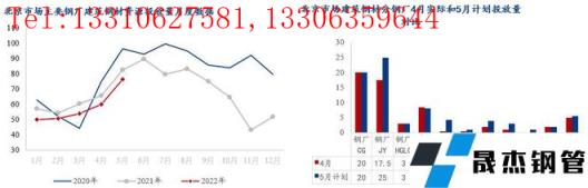 5月無縫厚壁鋼管廠家對京津冀區(qū)域投放量環(huán)比增加32.16萬噸,同比減少13.71萬噸。雖然無縫厚壁鋼管廠家生產(chǎn)成本高位,但產(chǎn)線復產(chǎn)的情況增加,具體來看:1、河鋼承鋼兩螺一線在產(chǎn),對京津冀投放量4月份22.5萬噸,5月份計劃22.5萬噸;2、河鋼樂鋼兩條螺紋產(chǎn)線在產(chǎn),4月唐山封城,資源主要對唐山本地投放,4月份合計13萬噸,5月份計劃投放13萬噸;3、敬業(yè)無縫厚壁鋼管廠家6條螺紋產(chǎn)線在產(chǎn),加上烏鋼資源流入,4月對京津冀投放量約43萬噸,5月計劃57.8萬噸;4、東華無縫厚壁鋼管廠家螺紋產(chǎn)線復產(chǎn),5月計劃投放10.19萬噸;5、鑫達一條螺紋產(chǎn)線不飽和生產(chǎn),4月京津冀僅投放6.5萬,5月份計劃投放10萬噸;6、4月建龍系無縫厚壁鋼管廠家對京津市場投放13.4萬噸左右,5月份計劃16萬噸左右,其中新?lián)徜撟疃唷?/p>