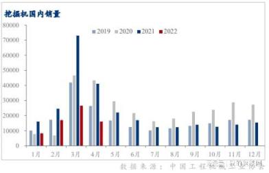 受疫情持續(xù)影響、房地產(chǎn)和基建工程開工率低迷等因素影響, 4月份工程機械的核心代表挖掘機銷售量同環(huán)比雙降。