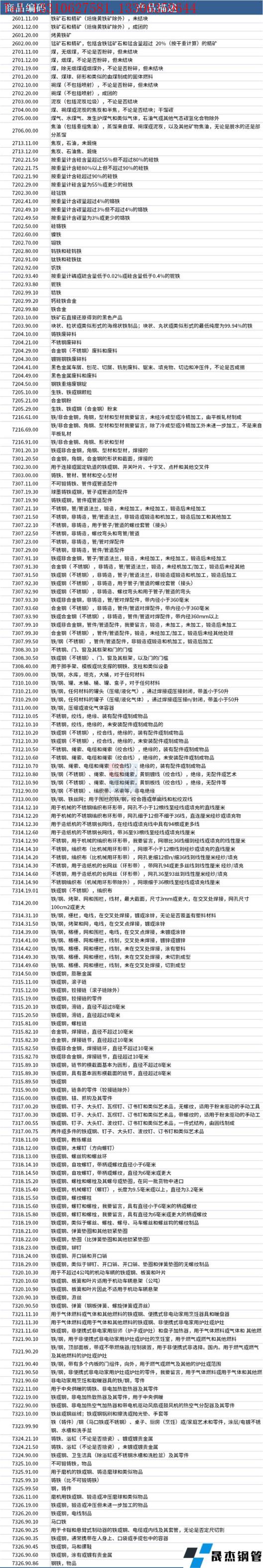 據(jù)不完全整理,美國征收中國產(chǎn)品關(guān)稅的清單,涉及鋼鐵類產(chǎn)品如下: