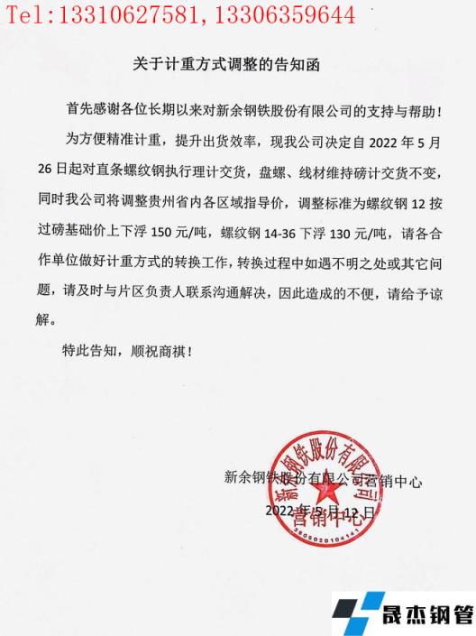 免責聲明:本網站(山東聊城晟杰無縫鋼管廠m.abagaf.com)刊載的“新余鋼鐵股份有限公司關于對貴州區(qū)域計重方式調整的告知函”等均源于網絡,版權歸原作者所有,且僅代表原作者觀點,本文所載信息僅供參考。轉載僅為學習與交流之目的,如無意中侵犯您的合法權益,請及時聯系刪除。本網站刊登此篇文章并不意味著本站贊同其觀點或證實其內容的真實性,我們不對其科學性、嚴肅性等作任何形式的保證。如果侵犯了您的版權,請盡快聯系我們予以撤銷,謝謝合作!