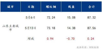 本周山東市場(chǎng)主要城市螺紋鋼社會(huì)庫(kù)存73.18萬(wàn)噸,較上周增加0.94萬(wàn)噸;盤(pán)螺社會(huì)庫(kù)存14.38萬(wàn)噸,較上周減少0.7萬(wàn)噸;總庫(kù)存87.56萬(wàn)噸,降0.24萬(wàn)噸。