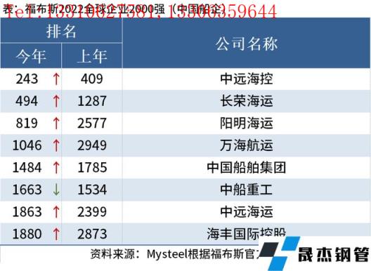 免責(zé)聲明:本網(wǎng)站(山東聊城晟杰無縫鋼管廠m.abagaf.com)刊載的“:中國(guó)8家船企上榜福布斯2022全球企業(yè)2000強(qiáng)”等均源于網(wǎng)絡(luò),版權(quán)歸原作者所有,且僅代表原作者觀點(diǎn),本文所載信息僅供參考。轉(zhuǎn)載僅為學(xué)習(xí)與交流之目的,如無意中侵犯您的合法權(quán)益,請(qǐng)及時(shí)聯(lián)系刪除。本網(wǎng)站刊登此篇文章并不意味著本站贊同其觀點(diǎn)或證實(shí)其內(nèi)容的真實(shí)性,我們不對(duì)其科學(xué)性、嚴(yán)肅性等作任何形式的保證。如果侵犯了您的版權(quán),請(qǐng)盡快聯(lián)系我們予以撤銷,謝謝合作!