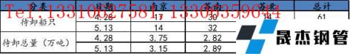 此次調(diào)研選取了南京、蘇州、無錫、常州、南通、徐州、揚(yáng)州、鹽城八個(gè)城市,以建筑厚壁無縫鋼管為主要庫存的20家倉(cāng)庫。通過匯總了解,當(dāng)前樣本倉(cāng)庫碼頭累計(jì)待卸船只總計(jì)53只,待卸總量達(dá)6.69萬噸。