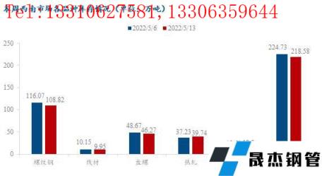 據(jù)調(diào)研,截止2022年5月13日,西南市場厚壁無縫鋼管累計社會庫存為218.58萬噸,環(huán)比減少6.14萬噸,降幅2.73%。分省份來看,本周四川市場厚壁無縫鋼管庫存為83.59萬噸,環(huán)比增加1.08萬噸,漲幅1.31%;重慶市場厚壁無縫鋼管庫存為69.55萬噸,環(huán)比減少1.15萬噸,降幅1.63%;貴州市場厚壁無縫鋼管庫存為27.03萬噸,環(huán)比減少4.57萬噸,降幅14.46%;云南市場厚壁無縫鋼管庫存為38.41萬噸,環(huán)比減少1.5萬噸,降幅3.76%。