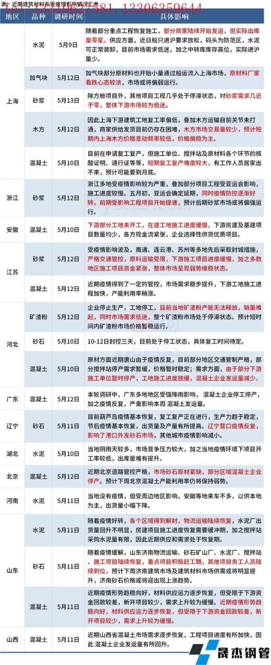 截至5月13日,據(jù)百年建筑網(wǎng)調(diào)研,12個(gè)省份建材市場(chǎng)受到了不同程度的影響。近期上海目前對(duì)全市建筑工地開展階梯式分類管理,重點(diǎn)聚焦涉疫工地,完善各項(xiàng)疫情防控措施,盡快實(shí)現(xiàn)建筑工地社會(huì)面清零,為建筑工地全面復(fù)工復(fù)產(chǎn)奠定基礎(chǔ)。加之近期華南地區(qū)雨水天氣來(lái)臨,運(yùn)輸和終端施工進(jìn)度受限,因此建材行情弱勢(shì)運(yùn)行。待全國(guó)疫情和汛期有所好轉(zhuǎn),公路、高速等基建項(xiàng)目支撐起一定需求,部分材料的發(fā)運(yùn)量會(huì)有所提升。具體情況如下: