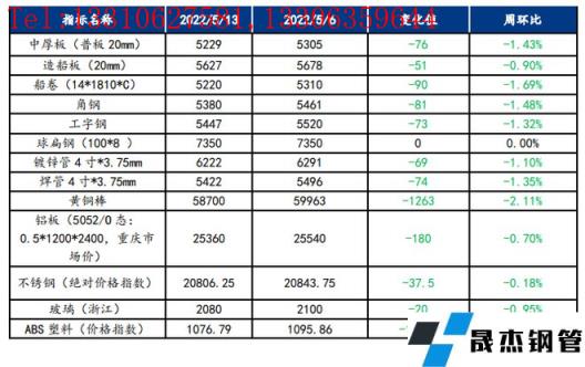 截止2022年5月13日,各原材料當(dāng)日即時價格以及價格周環(huán)比情況如下: