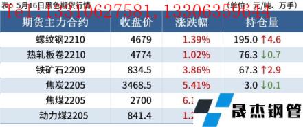 焦炭:5月16日,焦炭市場偏弱運行,焦炭市場二輪降價落地,累計降幅為400元/噸。產(chǎn)地焦企開工正常,生產(chǎn)良好,當(dāng)前焦企仍有盈利即產(chǎn)即銷,出貨順暢。無縫厚壁鋼管廠家方面,無縫厚壁鋼管廠家焦炭庫存呈現(xiàn)增勢,現(xiàn)大多控制到貨節(jié)奏,按需采購焦炭,考慮到無縫厚壁鋼管廠家成品出貨壓力較大且原料成本依然偏高,繼續(xù)打壓焦價意愿強烈。原料煤價格繼續(xù)回落,成本支撐較弱,預(yù)計短期內(nèi)焦炭市場偏弱運行。