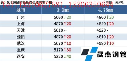 熱軋板卷:5月16日,全國24個主要城市4.75mm熱軋板卷均價5013元/噸,較上個交易日下跌8元/噸。受期貨盤面的影響午后價格小幅上揚,但成交普遍一般,看弱情緒仍在部分蔓延,商家多數(shù)仍謹(jǐn)慎操作,預(yù)計17日全國熱軋板卷價格將呈現(xiàn)小幅上漲的態(tài)勢。