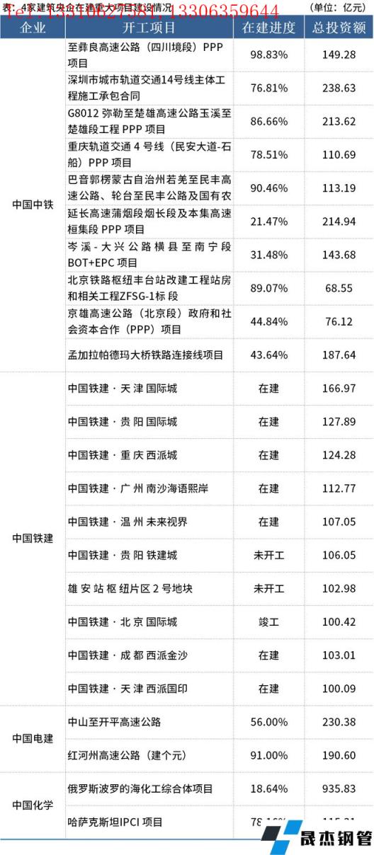 據(jù)梳理,中國中鐵、中國鐵建、中國電建、中國化學(xué)4家企業(yè)公布了在建重大項目情況,具體如下: