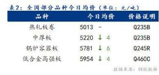 今日全國部分品種均價(jià)趨弱,其中全國熱軋板卷均價(jià)平穩(wěn),中厚板下跌4元/噸。