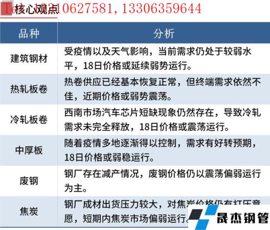 建筑厚壁無縫鋼管:5月17日,全國(guó)31個(gè)主要城市20mm三級(jí)抗震螺紋鋼均價(jià)4914元/噸,較上個(gè)交易日下跌17元/噸。從成交方面來看,早盤成交清淡,不溫不火,午后隨著期貨走弱,現(xiàn)貨跟跌,全天成交偏弱。短期來看,受疫情以及天氣影響,當(dāng)前需求仍處于較弱水平,總體成交清淡,預(yù)計(jì)18日國(guó)內(nèi)建筑厚壁無縫鋼管價(jià)格延續(xù)弱勢(shì)運(yùn)行態(tài)勢(shì)。
