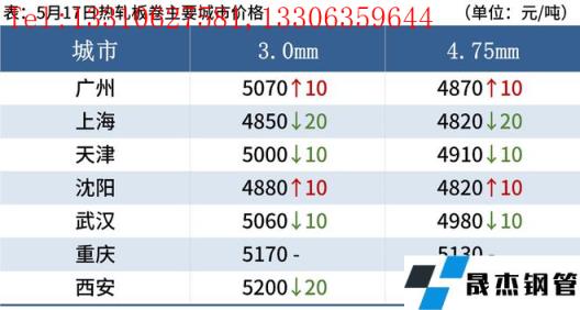 熱軋板卷:5月17日,全國(guó)24個(gè)主要城市4.75mm熱軋板卷均價(jià)5013元/噸,較上個(gè)交易日持平?,F(xiàn)貨市場(chǎng)基本處于觀望狀態(tài),不急于拿貨,市場(chǎng)整體成交情況較弱,盤面全日震蕩運(yùn)行,午后部分市場(chǎng)有小幅下跌。供需角度來看,近期熱卷供應(yīng)已經(jīng)基本恢復(fù)正常,需求方面受盤面觸底反彈影響,部分投機(jī)商戶小批量備貨,但終端需求依然不佳,雖然前期部分延遲需求逐步釋放,但同比依然處于低位。綜合來看,預(yù)計(jì)近期全國(guó)熱軋板卷價(jià)格弱勢(shì)震蕩運(yùn)行為主。