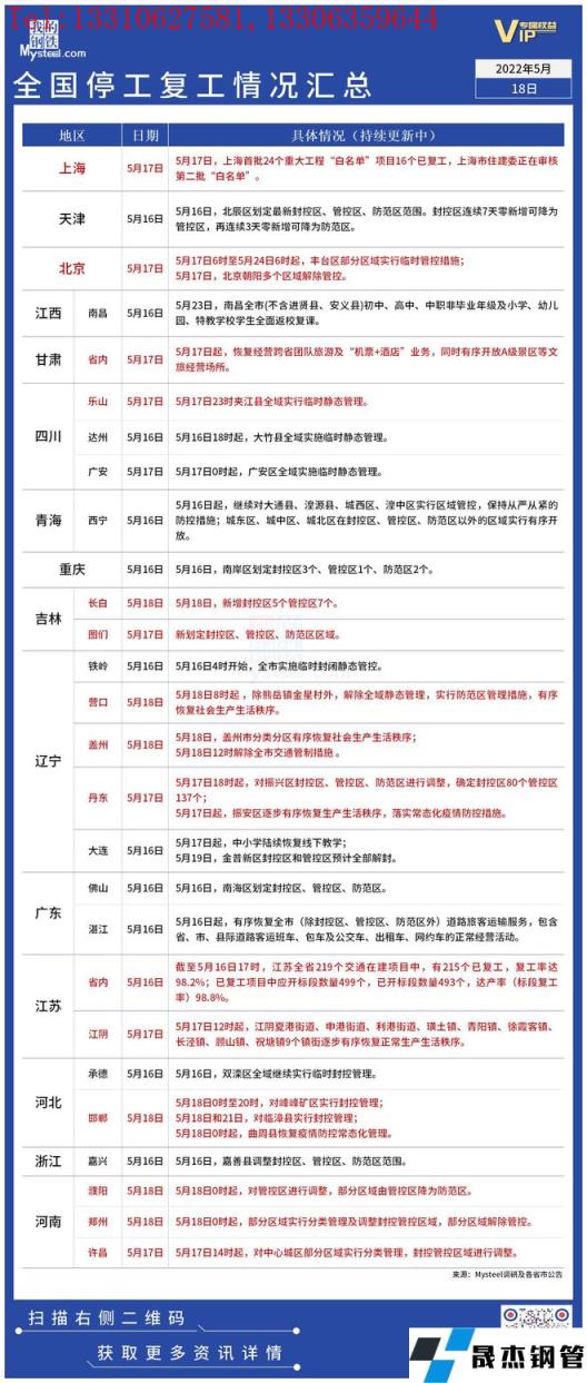 疫情影響丨全國停工復工情況匯總(5月16日)