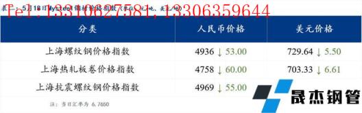 5月18日普鋼絕對(duì)價(jià)格指數(shù)變化:綜合指數(shù)5121.58,下跌34.88;螺紋鋼指數(shù)4880.16,下跌40.01;線材指數(shù)5275.25,下跌35.79;熱軋板卷指數(shù)4890.13,下跌53.58;冷軋板卷指數(shù)5427.66,下跌26.39;中厚板指數(shù)5135.01,下跌20.18。