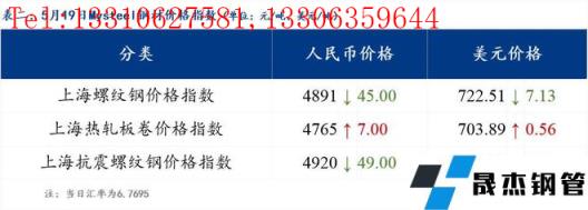 分地區(qū)方面,上海螺紋鋼價(jià)格指數(shù)4891,下跌45.0;上海熱軋板卷價(jià)格指數(shù)4765,上漲7.0。(單位:元/噸)