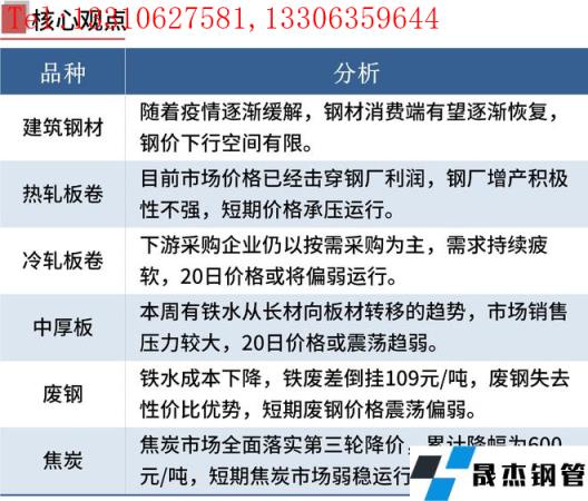 建筑厚壁無(wú)縫鋼管:5月19日,全國(guó)31個(gè)主要城市20mm三級(jí)抗震螺紋鋼均價(jià)4832元/噸,較上個(gè)交易日下跌42元/噸。本周由于無(wú)縫厚壁鋼管廠家虧損減產(chǎn),螺紋鋼產(chǎn)量小幅下降,廠庫(kù)繼續(xù)上升,社庫(kù)繼續(xù)下降,同時(shí)表觀消費(fèi)小幅下滑。短期來(lái)看,目前市場(chǎng)基本面依然偏弱,但由于價(jià)格持續(xù)下跌已經(jīng)導(dǎo)致部分區(qū)域無(wú)縫厚壁鋼管廠家出現(xiàn)減產(chǎn)、停產(chǎn)情況,供給仍然維持低位。隨著疫情逐漸緩解,厚壁無(wú)縫鋼管消費(fèi)端有望逐漸恢復(fù),鋼價(jià)整體下行空間有限。因此預(yù)計(jì)20日國(guó)內(nèi)建筑厚壁無(wú)縫鋼管價(jià)格或?qū)⒄鹗帪橹鳌?/p>
