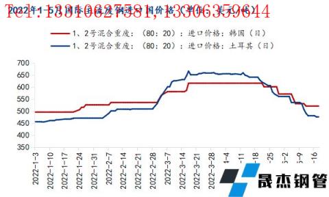 因成品銷售低迷,土耳其無縫厚壁鋼管廠家連續(xù)幾周遠離深海廢鋼采購,近期開始恢復采購,據(jù)調(diào)研,截止5月20日,土耳其HMS1:2(80:20)廢鋼到岸價在475美元/噸左右,距離3月份的高點大幅下降190美元/噸,離年內(nèi)低點約21美元/噸。韓國也因海外廢鋼價格的大幅走低,連續(xù)4周未對日本廢鋼進行采購,截止5月20日,韓國HMS1:2(80:20)廢鋼到岸價在520美元/噸,距離3月份的高點跌95美元/噸,離年內(nèi)低點約21美元/噸。截止目前,國際主流廢鋼進口國廢鋼價格較年內(nèi)峰值大跌近百美元,多接近于年內(nèi)低點。
