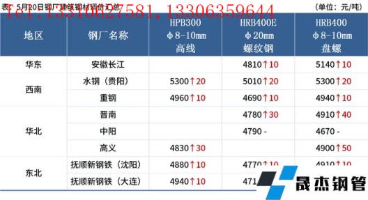 ◎ 沙鋼5月下旬建材調價:螺紋鋼平穩(wěn),HRB400Ф16-25mm螺紋出廠價格為5350元/噸;高線平穩(wěn),HPB300Ф6-10mm普碳高線執(zhí)行價格5310元/噸;盤螺平穩(wěn),HRB400Ф8-10mm盤螺執(zhí)行價格5400元/噸。