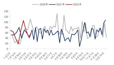 俄烏沖突以來,球團的供應(yīng)確實受到一定影響,但從海關(guān)進口數(shù)據(jù)來看,今年1-2月份烏克蘭球團月度進口量也就是在20萬噸附近,折合每周約5萬噸;而從圖2中可以看出,2月中以來國產(chǎn)球團產(chǎn)量持續(xù)增加,從38家球團廠周度產(chǎn)量來看,球團產(chǎn)量由111.05萬噸增至147.28萬噸(2022年2月21日與2022年4月初相比,下文時間點同上),114家無縫厚壁鋼管廠家?guī)齑嬷星驁F產(chǎn)量由18.86萬噸/天增至21.63萬噸/天,折合周度產(chǎn)量每周增加33.39萬噸,按照代表性折算約83.48萬噸,足以彌補烏克蘭的影響。
