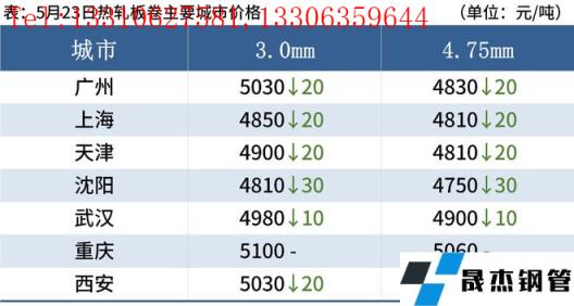 熱軋板卷:5月23日,全國24個主要城市4.75mm熱軋板卷均價4940元/噸,較上個交易日下跌8元/噸。5月22日,市場突傳印度將針對鐵礦石及部分鋼鐵產(chǎn)品大幅提高出口關(guān)稅,市場情緒得到回暖,盤面下方支撐增強。隨著經(jīng)濟下行壓力增大,政策面暖風頻吹,5月5年期LPR下調(diào)15個基點,降低購房者置業(yè)成本、提高購房者置業(yè)意愿的同時,進一步提振了市場信心,預計后期地產(chǎn)方面將持續(xù)出臺利好政策。但由于疫情的影響,其對需求的制約依然明顯,厚壁無縫鋼管的現(xiàn)實需求短期難有明顯增量。因此,24日全國熱軋板卷仍呈現(xiàn)持穩(wěn)或小幅波動的態(tài)勢。