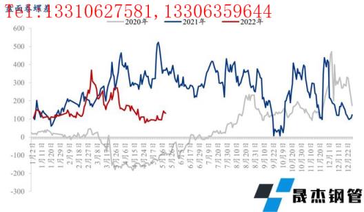 從盤面卷螺差的歷史走勢看,當(dāng)出現(xiàn)大于300點(diǎn)和靠近0軸附近的位置,都有波段操作的機(jī)會(huì)。從下圖可以看到,2022年3月國際疫情蔓延,疊加俄烏問題,無縫厚壁鋼管廠家板材出口接單火爆,雖然疫情對國內(nèi)市場需求也有一定沖擊,但受取暖季和冬奧會(huì)限產(chǎn)影響,此時(shí)品種強(qiáng)弱并未明顯分化。俄烏問題引發(fā)的出口大增,唐山疫情爆發(fā)對板材產(chǎn)量的影響,激化了盤面卷螺差一度沖擊369高點(diǎn)后回落,此時(shí)就是做空卷螺差的機(jī)會(huì)。
