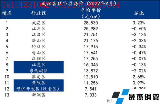 表3:武漢各區(qū)市縣住房平均單價(jià)水平