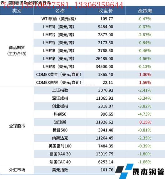 ◎ 世界鋼協(xié):2022年4月全球粗鋼產(chǎn)量同比下降5.1%至1.627億噸。中國(guó)4月的粗鋼產(chǎn)量為9280萬(wàn)噸,同比下降了5.2%;印度4月產(chǎn)量為1010萬(wàn)噸,同比增長(zhǎng)6.2%;日本4月產(chǎn)量為750萬(wàn)噸,同比下降了4.4%;美國(guó)4月產(chǎn)量為690萬(wàn)噸,同比下降3.9%。