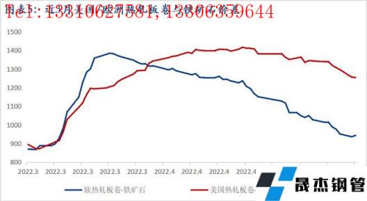 雖然4月上旬全球成品鋼價(jià)格延續(xù)上漲,致使北美、歐洲、土耳其等主要產(chǎn)鋼國(guó)日均產(chǎn)量小幅上漲(3-5%),但4月下旬成品鋼跌幅明顯大于原材料尤其是鐵礦石下跌幅度。表5為近三月美國(guó)和歐洲熱卷價(jià)格與鐵礦石價(jià)差,該價(jià)差僅取主流價(jià)格且未經(jīng)嚴(yán)格計(jì)算不代表生產(chǎn)成本,僅作利潤(rùn)變化的趨勢(shì)參考。可見(jiàn)歐洲熱軋板卷與鐵礦石價(jià)差在3月中下旬達(dá)到高點(diǎn)后,在整個(gè)4、5月份連續(xù)下降,相比之下該價(jià)差在美國(guó)的降幅相對(duì)較小。