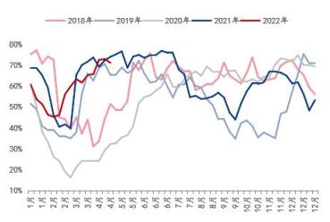 結(jié)合相應(yīng)的產(chǎn)能利用率來看,截止至2022年4月底,湖北省螺紋鋼產(chǎn)能利用率約在71.22%,高于近5年的每年平均水平,且從走勢圖上看,基本處于歷年產(chǎn)能釋放值的高位運(yùn)行;而線盤產(chǎn)能利用率約在67.54%,尚且低于平均值水平,從走勢圖上看,并未達(dá)到峰值水平在釋放。由此看來,隨著新增產(chǎn)能的釋放,若產(chǎn)能利用率維持在相對高位運(yùn)行,將一定程度上在供應(yīng)方面做了疊加效應(yīng)。當(dāng)然,供應(yīng)能力的單方面增加并未能說明價格一定會出現(xiàn)偏低運(yùn)行的表現(xiàn),因此需結(jié)合需求的表現(xiàn)來驗證一下。